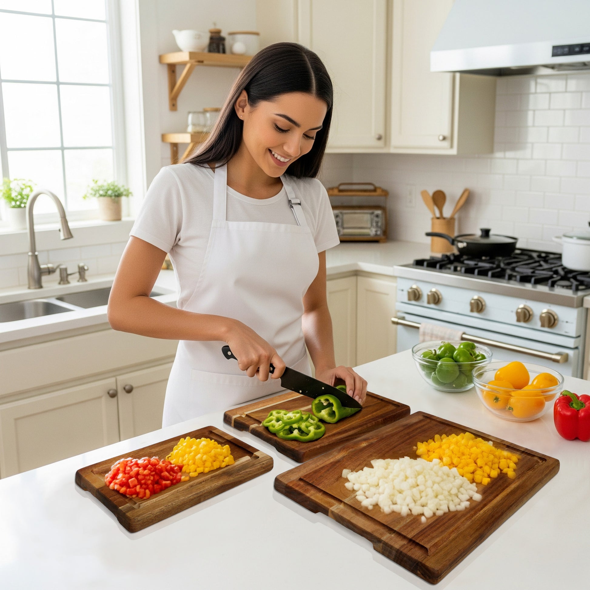 **3-Piece Wooden Set** The natural grain of acacia wood is not only beautiful but also durable. This set of chopping boards comes in three sizes, accommodating the daily cutting needs of most users.