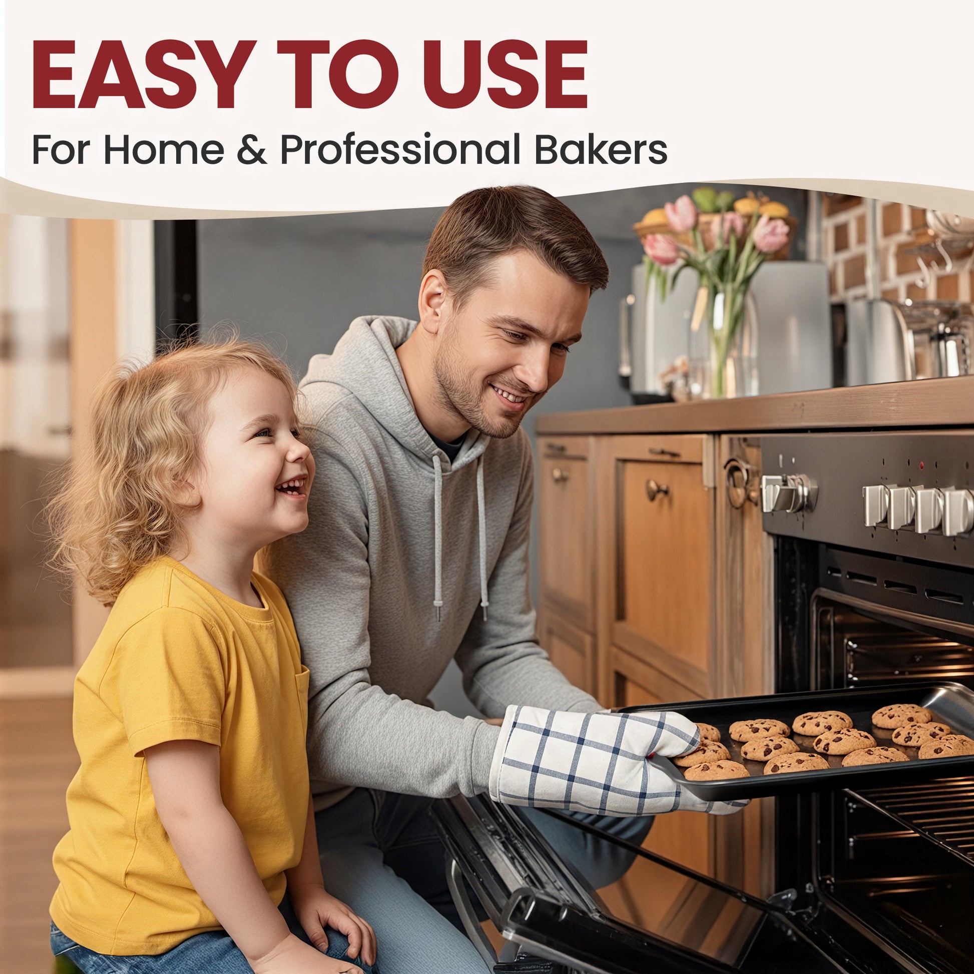 【CARBON STEEL MATERIAL】 Our non-stick baking pans set is made of premium heavy-duty carbon steel material, which is safe and non-toxic and can withstand high temperatures up to 446 degrees Fahrenheit.