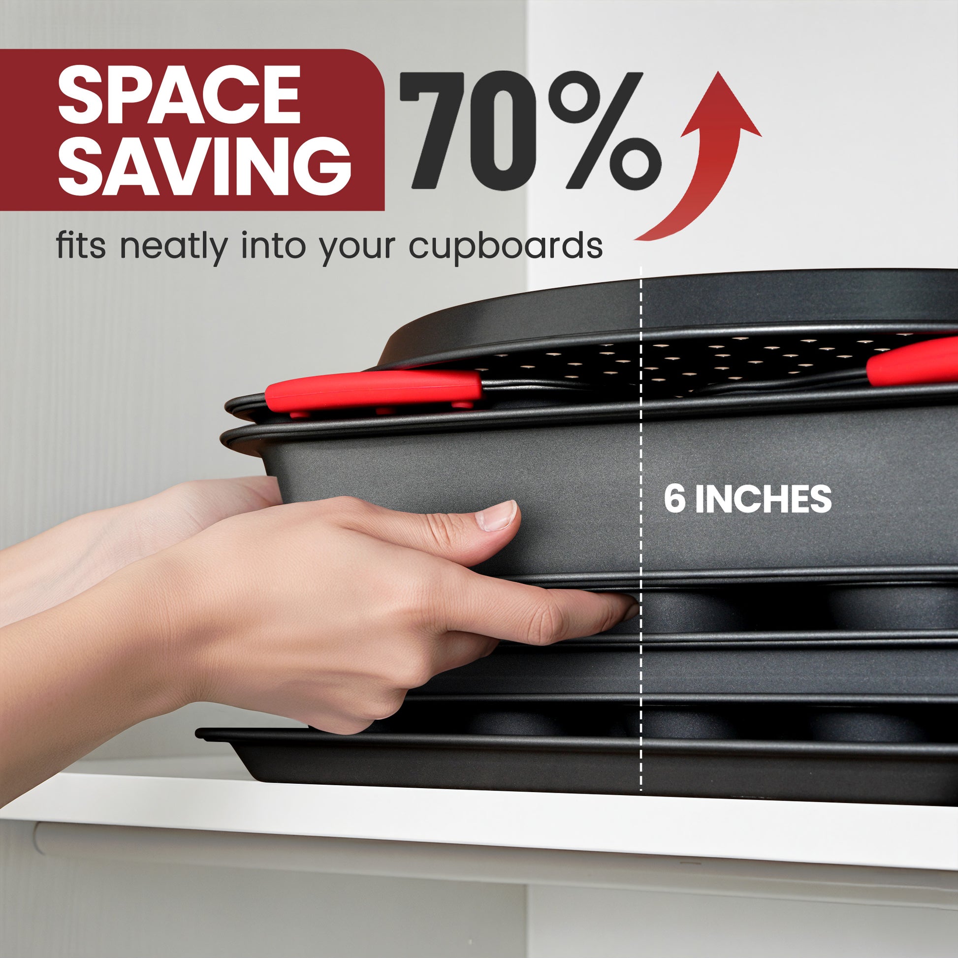 【STACKABLE FOR SPACE SAVINGS】 Our kikcoin baking pan set is easy to store, and the stackable design is made for small kitchen closets.