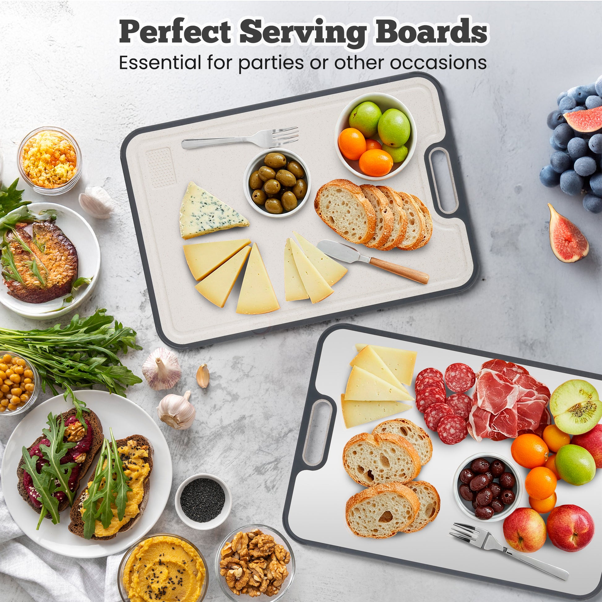 The plastic side is designed with a juice trough to prevent food juices from spilling onto the table, keeping your countertop clean.